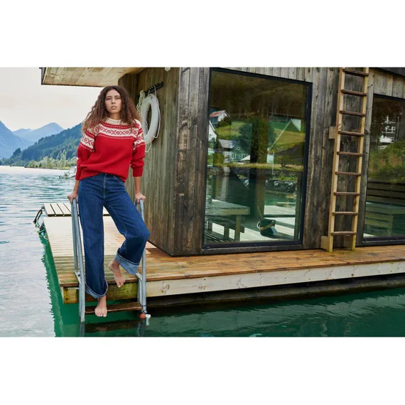 Vlněný neskutečně jemný svetr Cortina v novém moderním designu a krásných sytých barvách z nejkvalitnější norské vlněné příze. Originál! Náš první oficiální olympijský svetr navržený pro zimní olympijské hry 1956 v italské Cortině d'Ampezzo a nedávno znovu uveden na trh. Vzor, který zachycuje podstatu tradiční norské historie, se stal jedním z nejoblíbenějších norských vzorů. Vyrobeno ze 100% norské vlny.